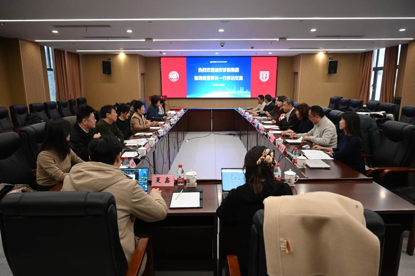 在吴凡院长陪同下,陈海斌董事长一行参观了市传研院重点研究平台,随后就加强未来合作开展座谈研讨。会上,双方分别介绍了各自在科研创新转化、人才培养等方面的突出优势及发展战略,并就未来可能的合作方向充分交换意见。